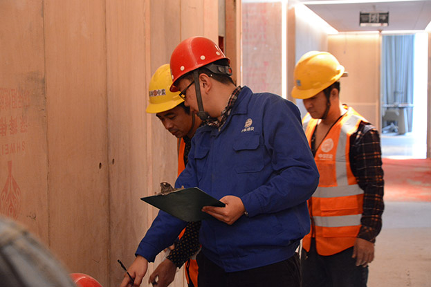 公司領(lǐng)導(dǎo)多次到現(xiàn)場指導(dǎo)工作,與業(yè)主及時溝通,整合資源。公司的管理平臺也有效、迅速地支撐項目一線,用高效、科學(xué)的管理方法,嚴(yán)控各個流程節(jié)點、項目質(zhì)量。項目部選用機電等設(shè)備安裝與其他各分部工程配合穿插作業(yè),同步進(jìn)行,不占用整體工期;“樣板引路”,確保一次成優(yōu),杜絕返工。提高工作效率,加快施工進(jìn)度,抓住主要工序,合理安排勞動力,實現(xiàn)立體交叉施工。公司、平臺、項目部沒有一絲松懈,最終將中裝建設(shè)服務(wù)完美呈現(xiàn)給業(yè)主。